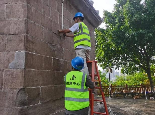 項(xiàng)目推進(jìn)過程中,市建科院積極聯(lián)動(dòng)多方力量,為監(jiān)測(cè)工作的科學(xué)性與合規(guī)性保駕護(hù)航。重慶市文物考古研究院、江北區(qū)文物保護(hù)管理所的相關(guān)人員與監(jiān)測(cè)團(tuán)隊(duì)并肩作戰(zhàn),在高溫環(huán)境下共同勘察現(xiàn)場(chǎng)、深入溝通,逐一確認(rèn)監(jiān)測(cè)設(shè)備的安裝部位,并就文物安裝的注意事項(xiàng)進(jìn)行細(xì)致的技術(shù)交底。多方協(xié)作確保了設(shè)備部署既能滿足監(jiān)測(cè)的精準(zhǔn)需求,又嚴(yán)格遵循文物保護(hù)的專業(yè)規(guī)范,讓每一步操作都經(jīng)得起專業(yè)檢驗(yàn)。