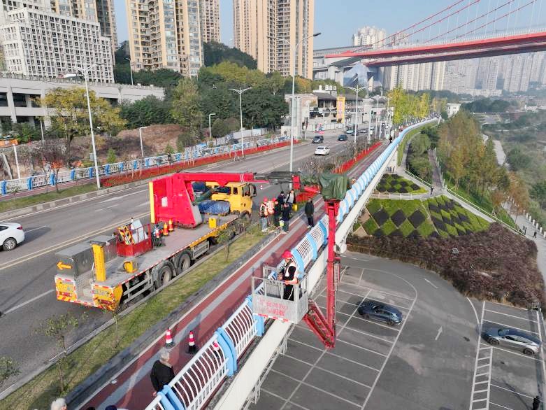 截至目前,檢測團隊已完成陳庹路大橋、九濱路等8座橋梁的檢測工作,預計12月完成九龍坡轄區(qū)79座橋梁的全部檢測工作。