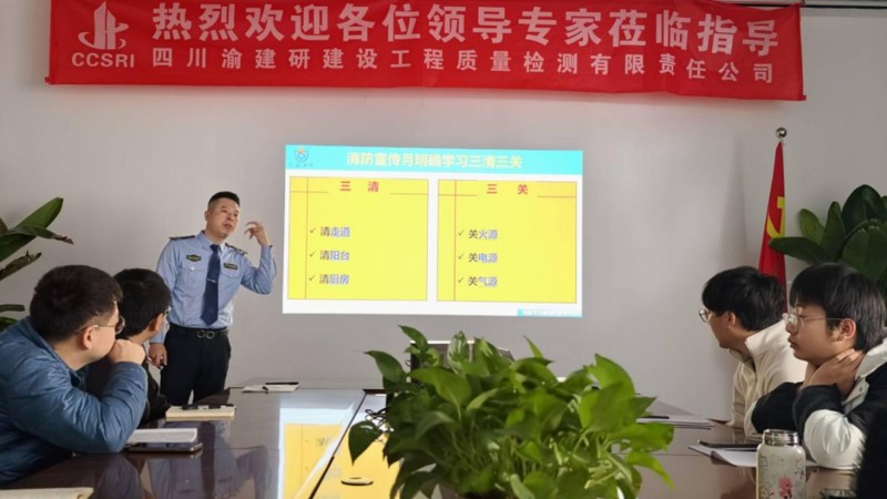 為切實壓實企業消防安全主體責任,提升員工火災防控與應急處置實戰能力,重慶設計集團市建科院下屬四川渝建研建設工程質量檢測有限公司(以下簡稱“四川渝建研公司”)邀請駐地消防救援大隊專業教官,面向全體員工組織開展了消防安全專題培訓及實戰演練。各部門員工積極參與,通過“理論+實操”相結合的學習方式,進一步筑牢企業安全生產“防火墻”。