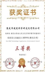 重慶市第五屆建設工程BIM大賽三等獎
