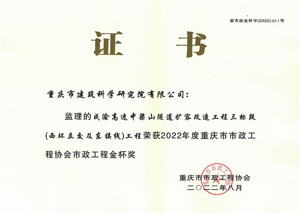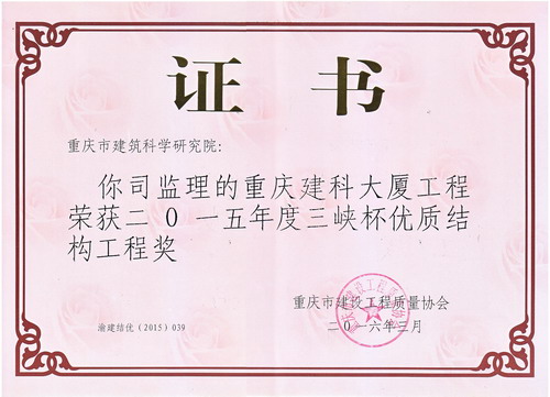 建科大廈工程獲三峽杯優(yōu)質(zhì)結(jié)構(gòu)工程獎